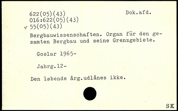 Bergbauwissenschaften. Organ für den gesamten Bergbau und seine Grenzgebiete. Goslar 1965- Jahrg.12- Den løbende årg.udlånes ikke. _SK