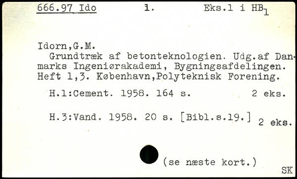 Idorn,Gr.M. Grundtræk af betonteknologien. Udg.af Danmarks Ingeniørakademi, Bygningsafdelingen. Heft 1,3. København,Polyteknisk Forening. H.l:Cement. 1958.