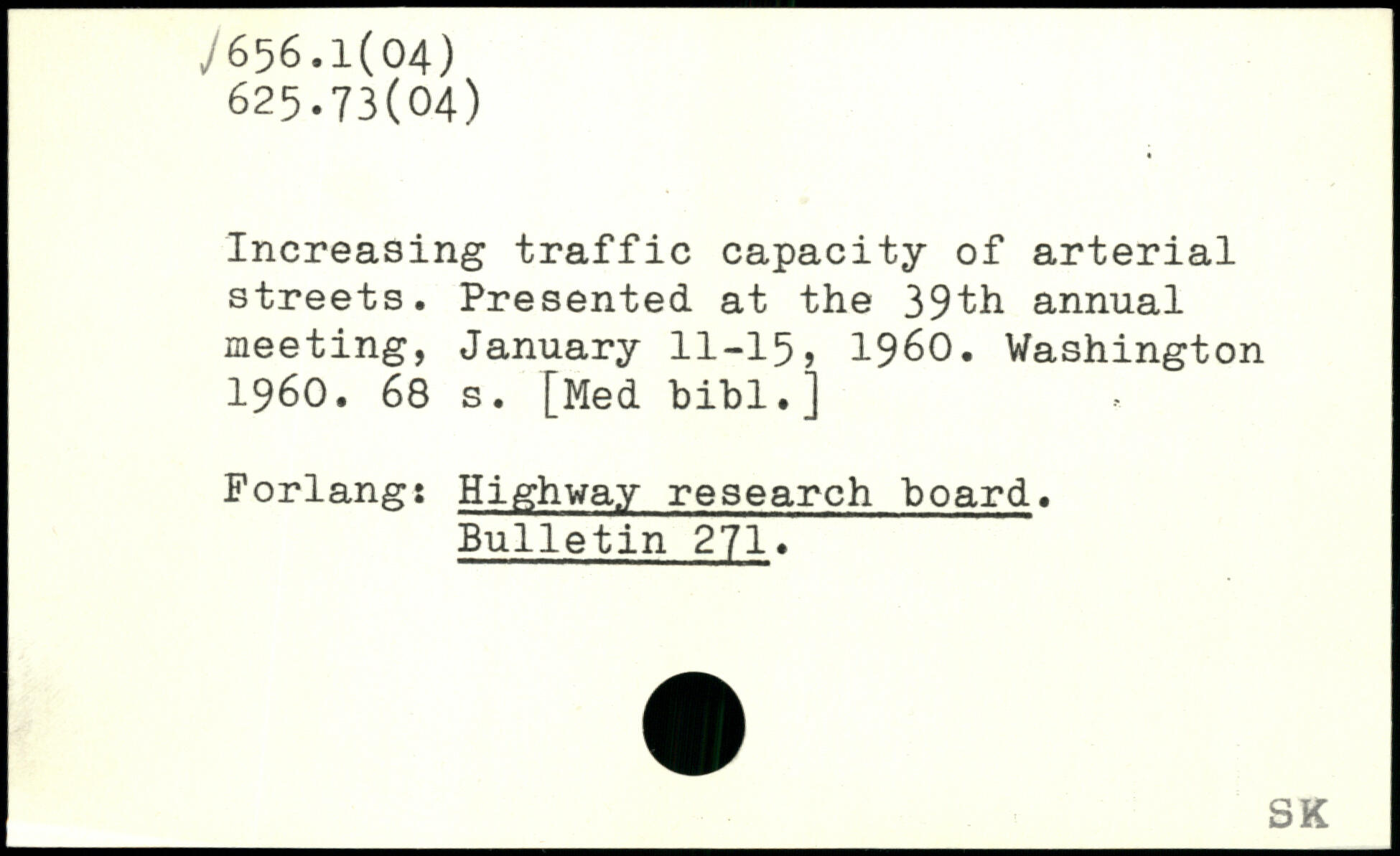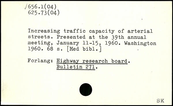 Increasing traffic capacity of arterial streets. Presented at the 39fh annual meeting, January 11-15? 1960.