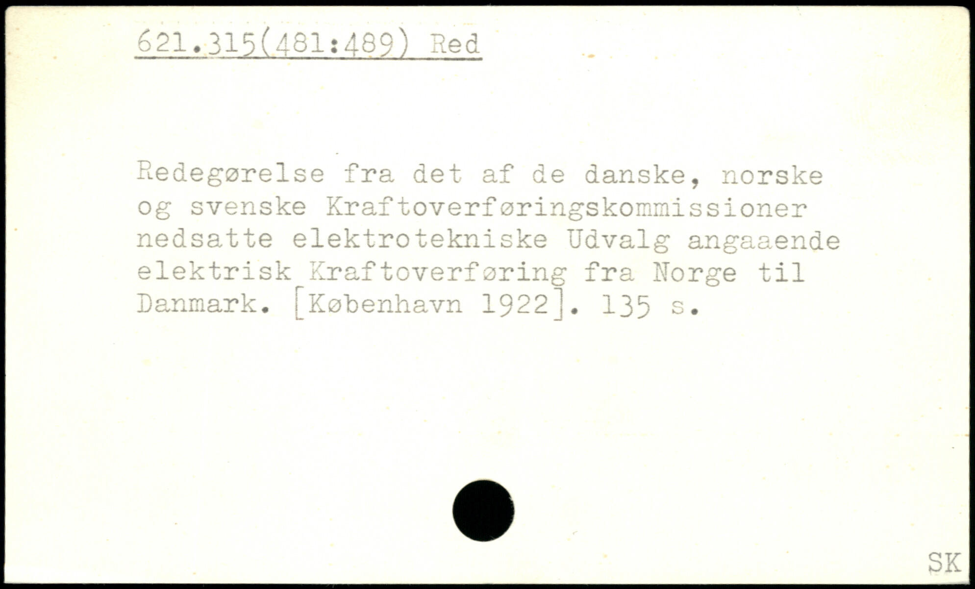 Redegørelse fra det af de danske, norske og svenske Kraftoverføringskommissioner nedsatte elektrotekniske Udvalg angaaende elektrisk Kraftoverføring fra Uorge til Danmark.