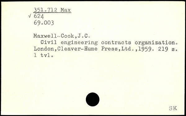 Civil engineering contracts organization, London,Cleaver-Hume Press,Ltd,,1959.