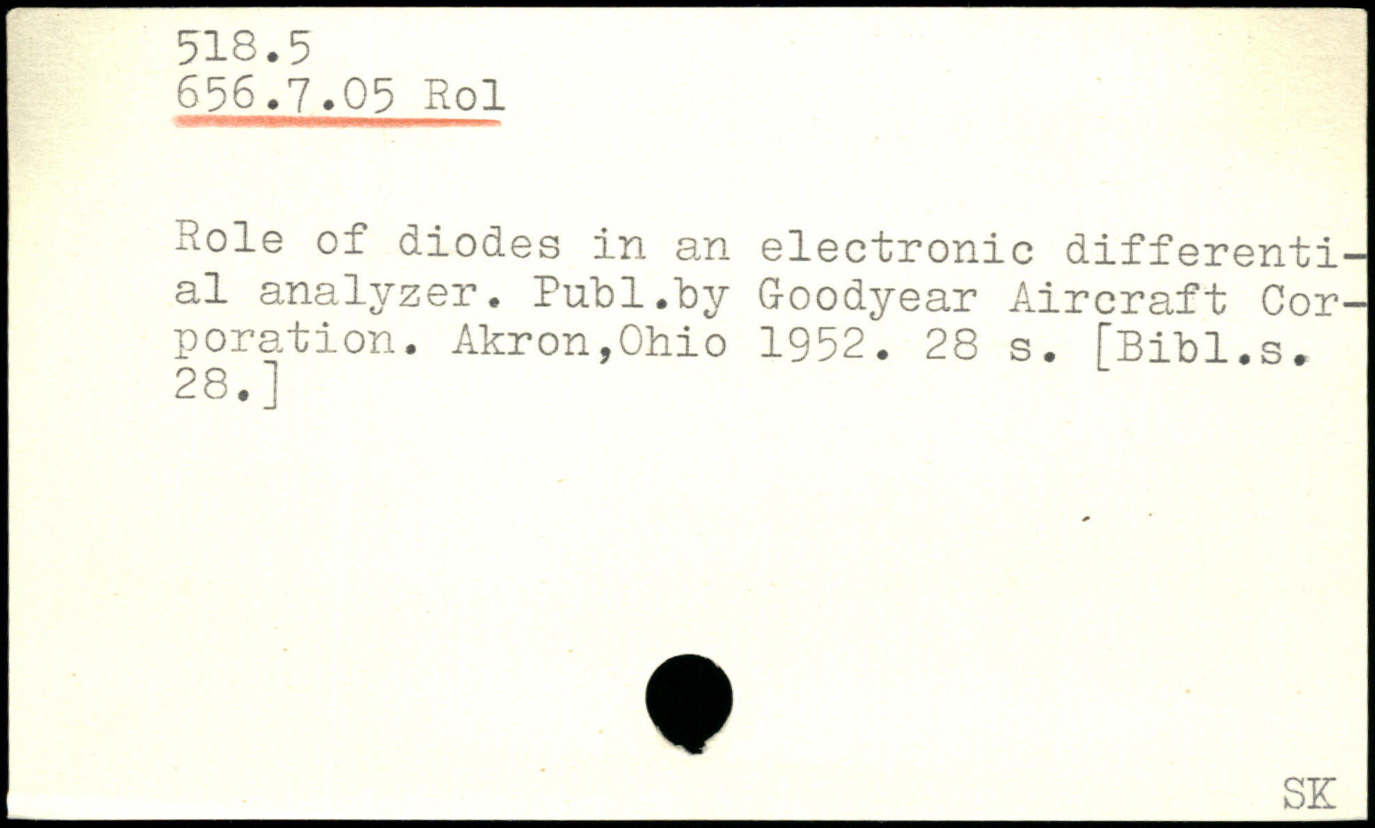 Hole of diodes in an electronic differential analyzer.