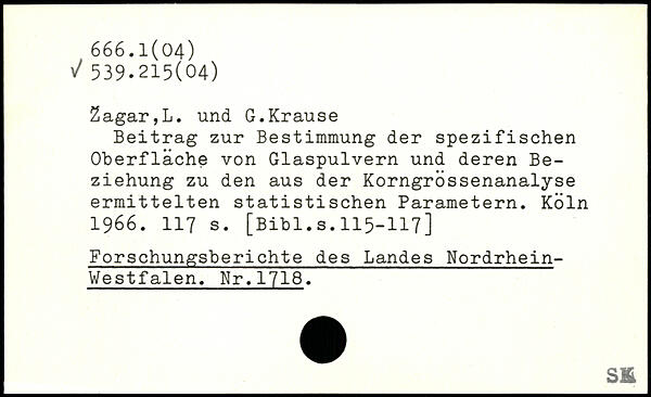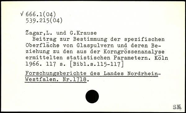Beitrag zur Bestimmung der spezifischen Oberfläche von Glaspulvern und deren Beziehung zu den aus der Korngrössenanalyse ermittelten statistischen Parametern.