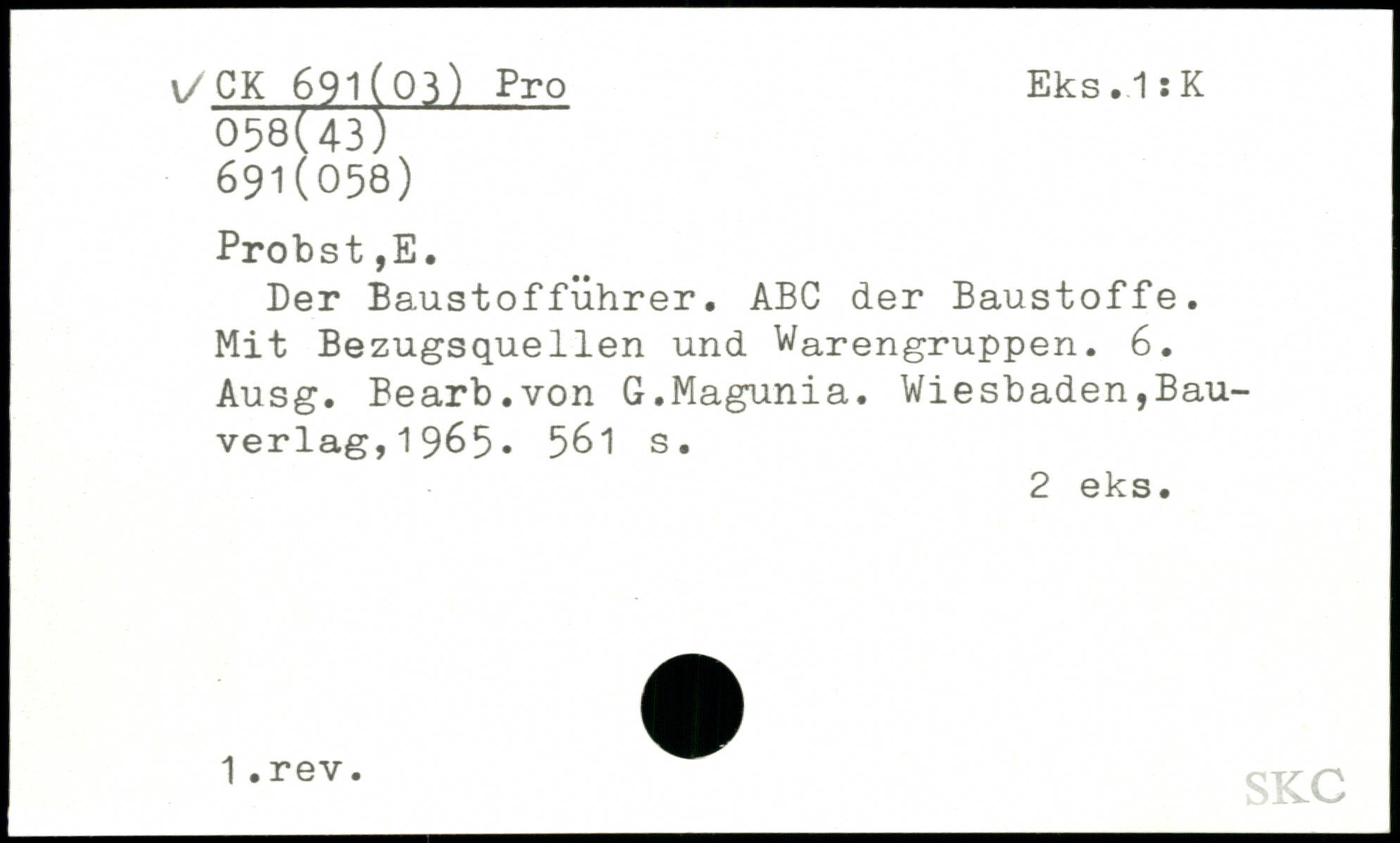 Der Baustoffiihrer. ABC der Baustoffe. Mit Bezugsquellen und Warengruppen. 6. Ausg. Bearb.von G.Magunia.