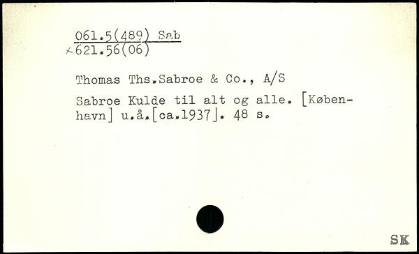 Thomas Ths.Sabroe & Co., A/s Sabroe Kulde til alt og alle. [København] u.å,[ca.1937J.
