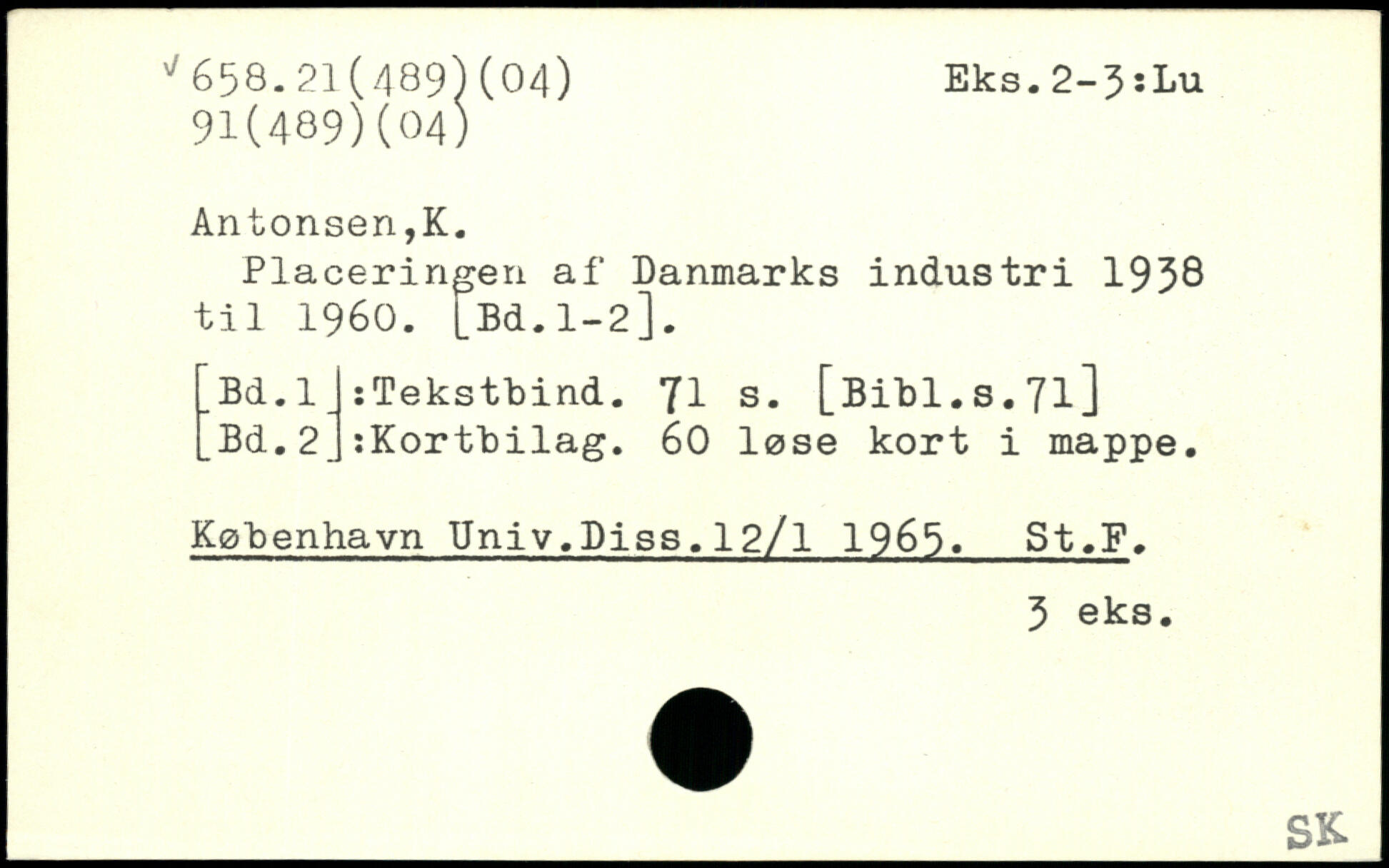 Placeringen af Danmarks industri 1938 til 1960. [