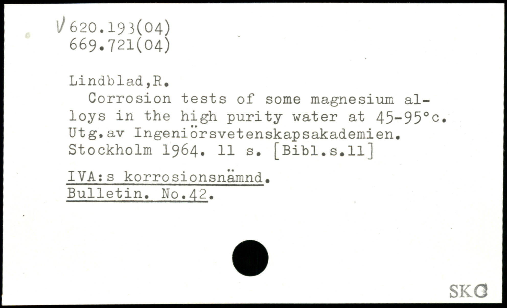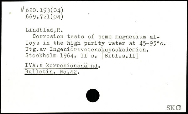 Corrosion tests of some magnesium alloys in the high purity water at 45-95.c. Ut g.av Ingeniorsvetenskapsakademien.