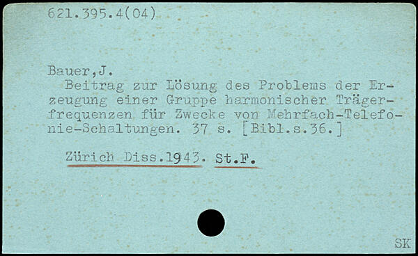 Beitrag zur Lösung des Problems der Erzeugung einer Gruppe harmonischer Trägerfrequenzen für Zwecke von Mehrfach-Telefo-nie-Schaltungen.