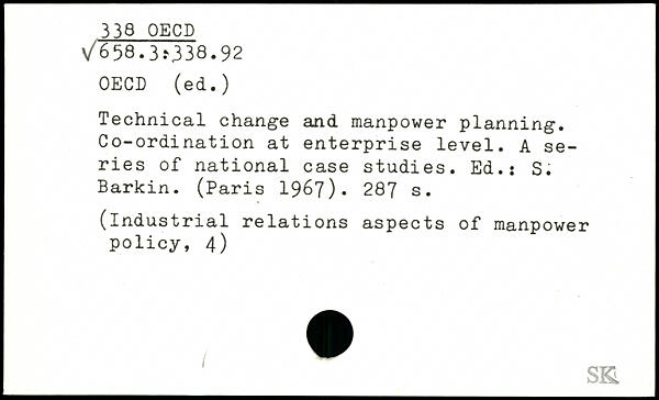 Technical change and manpower planning. Co-ordination at enterprise level. A series of national case studies. Ed.: S. Barkin. (