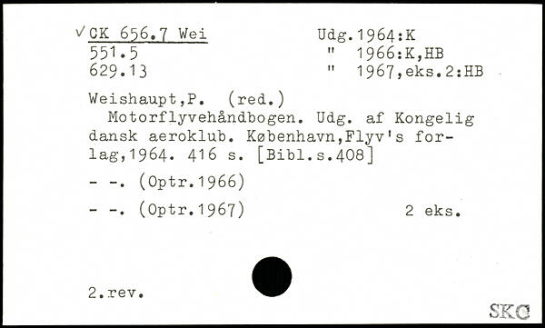 Motorflyvehåndbogen. Udg. af Kongelig dansk aeroklub. København,Flyv's forlag, 1964.