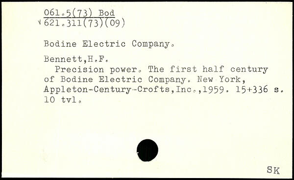 Bodine Electric Company,, Bennett,H,Fe Precision power, The first half century of Bodine Electric Company.