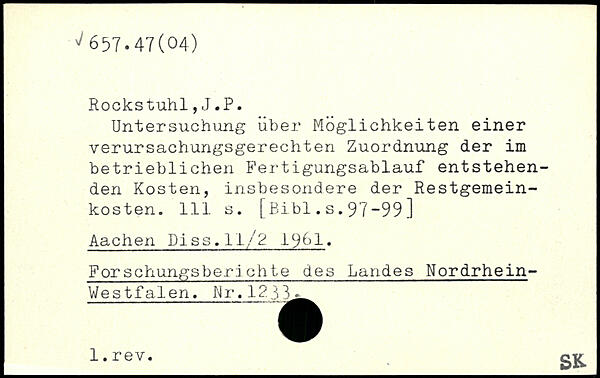 Untersuchung über Moglichkeiten einer verursachungsgerechten Zuordnung der im betrieblichen Fertigungsablauf entstehenden Kosten, insbesondere der Restgemeinkosten.