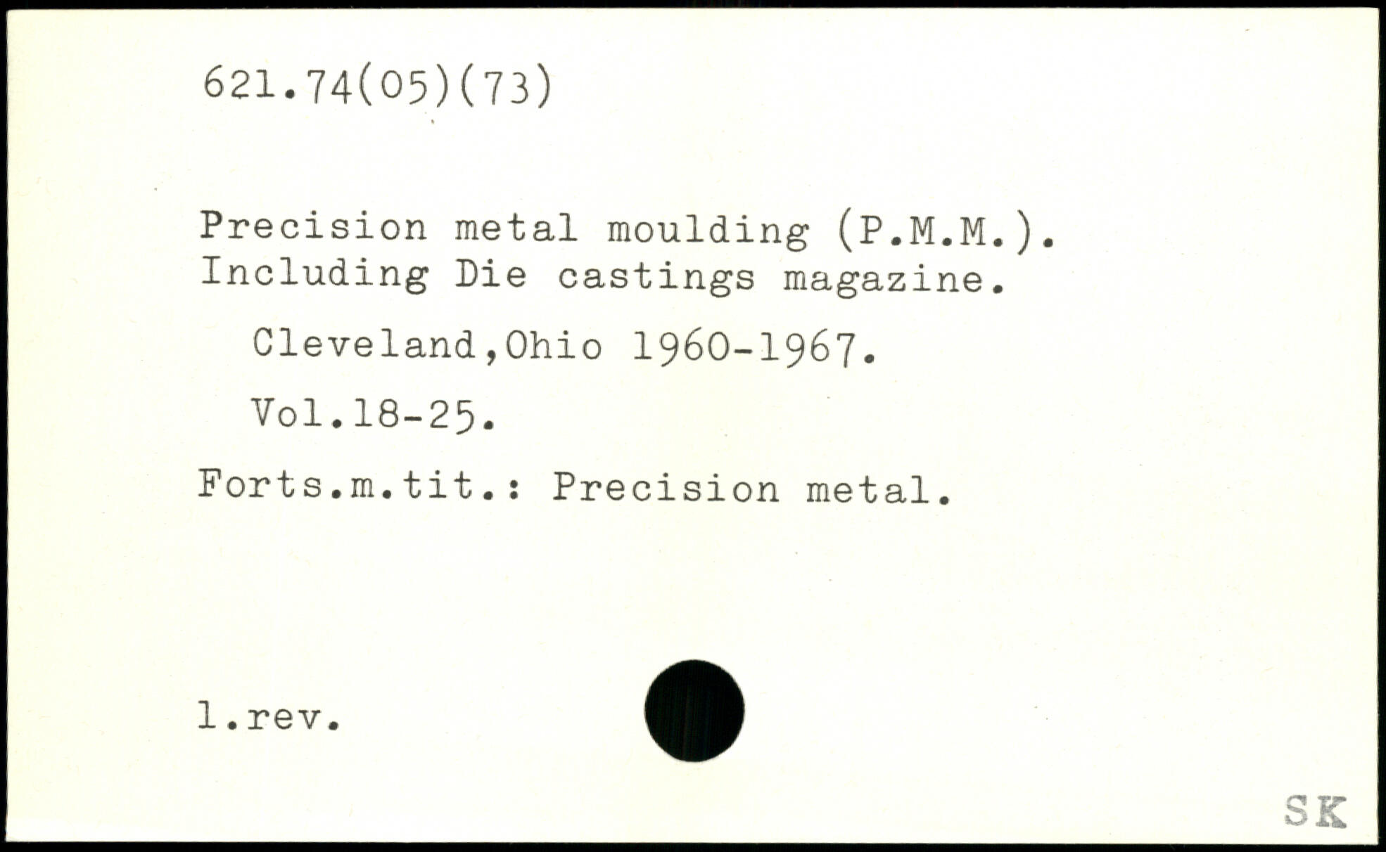 Precision metal moulding (P.M.M.). Including Die castings magazine.