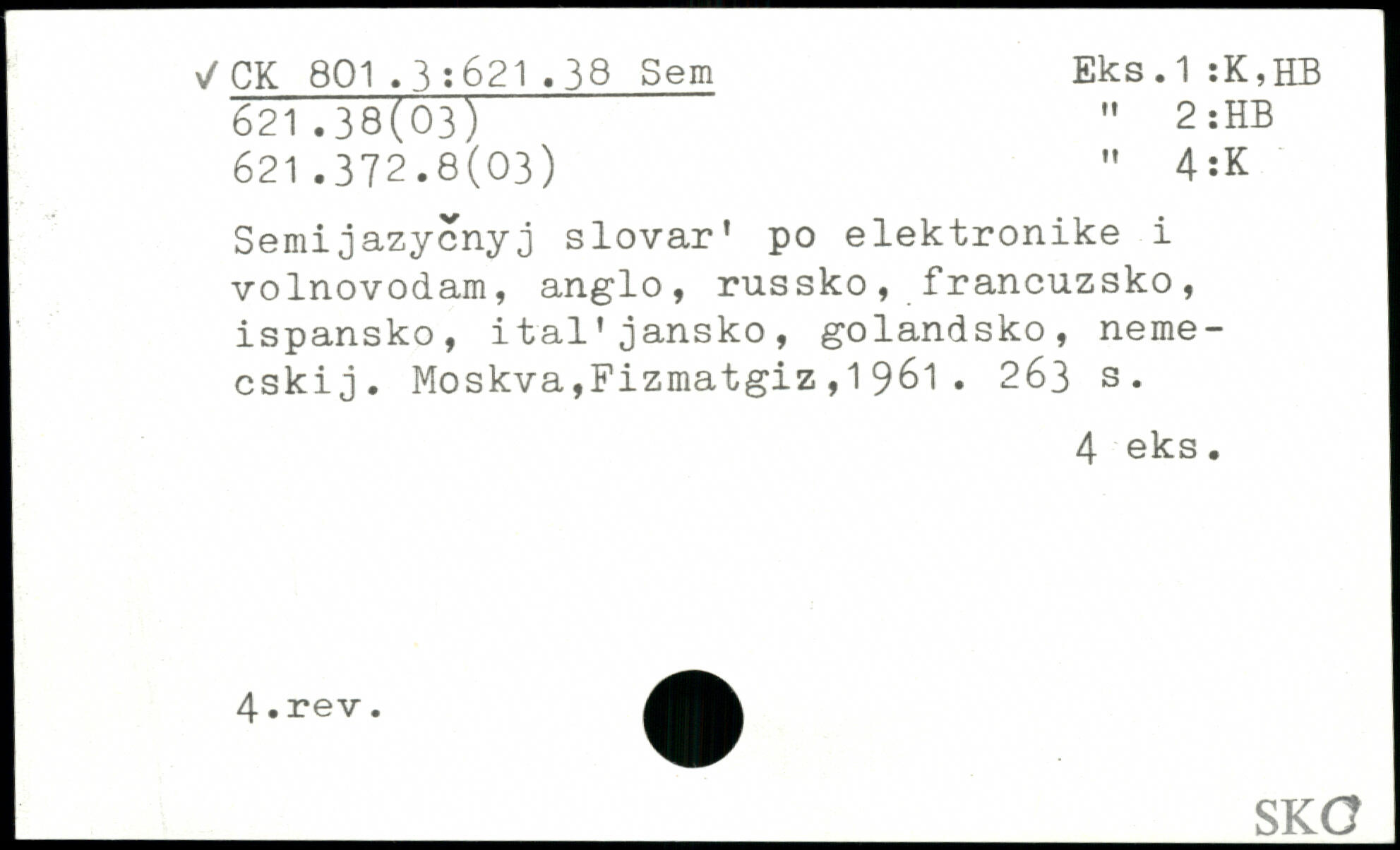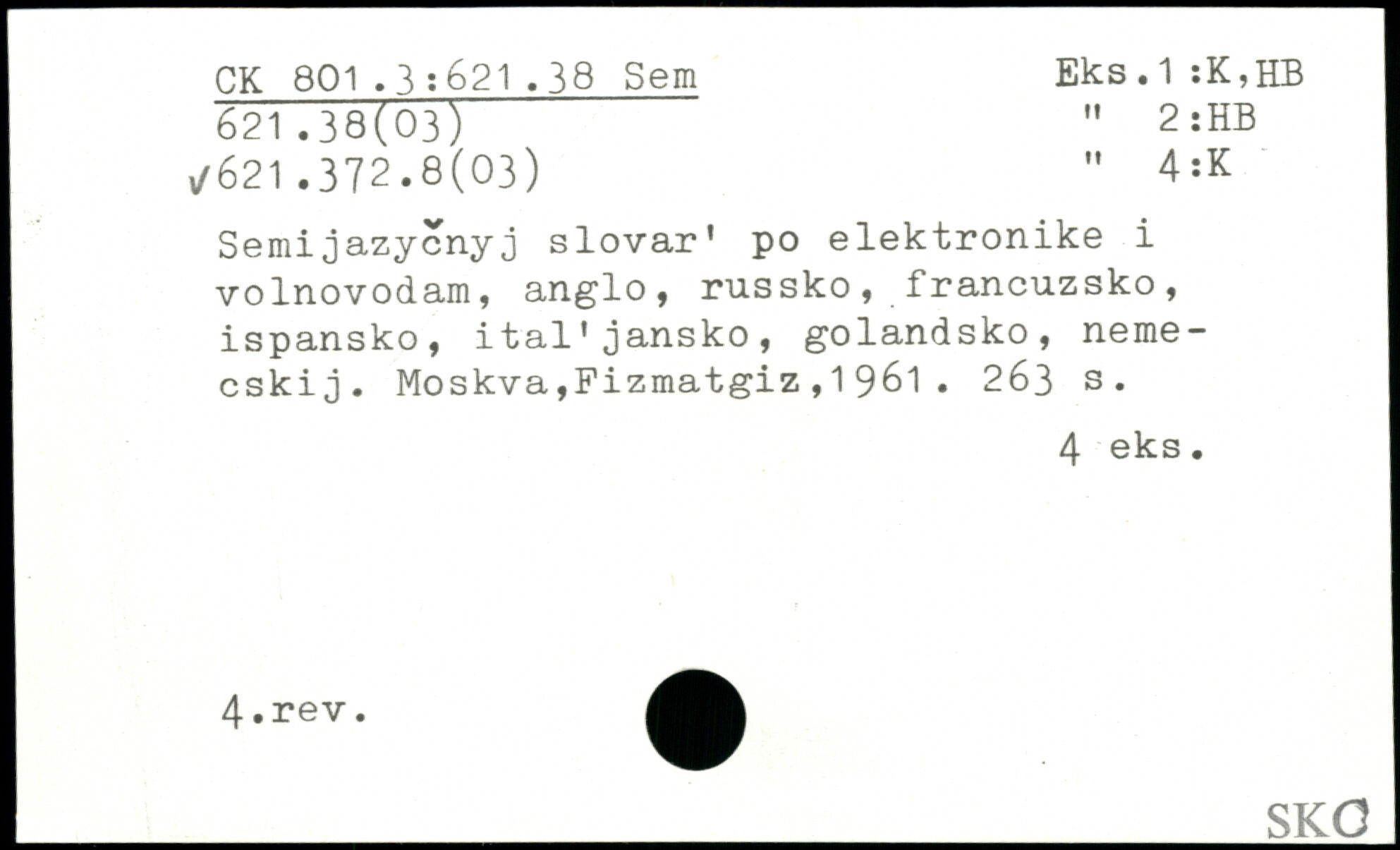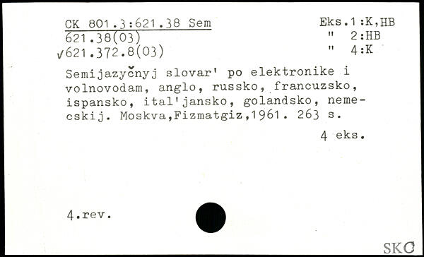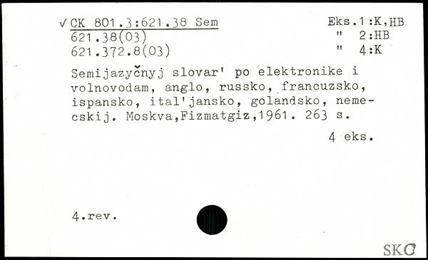 Semijazycnyj slovar' po elektronike i volnovodam, anglo, russko, francuzsko, ispansko, ital’jansko, golandsko, neme-cskij. Moskva,Fizmatgiz,1 961.