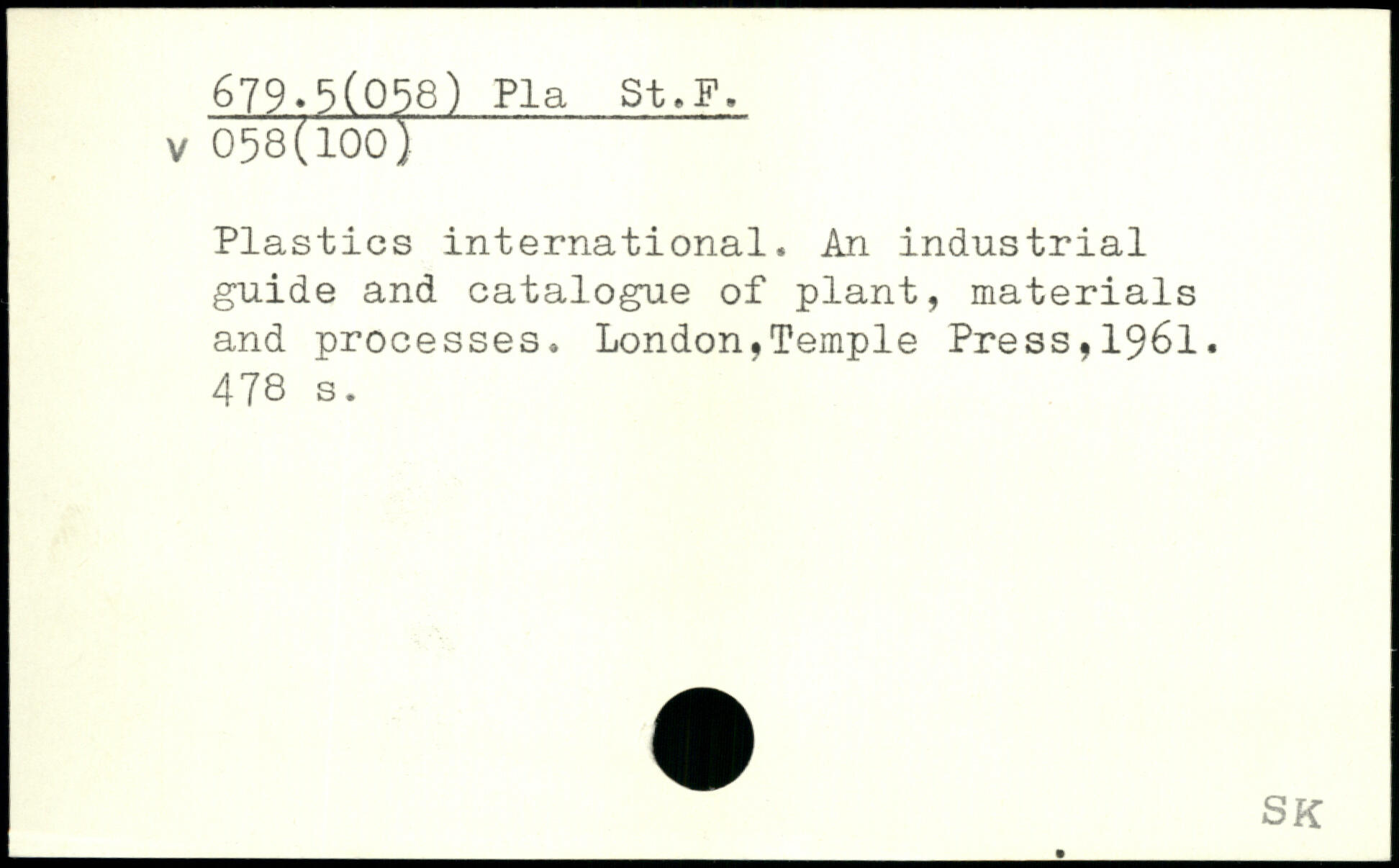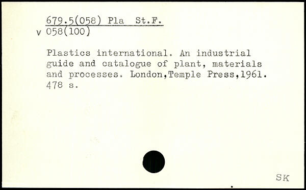 Plastics international. An industrial guide and catalogue of plant, materials and processes.
