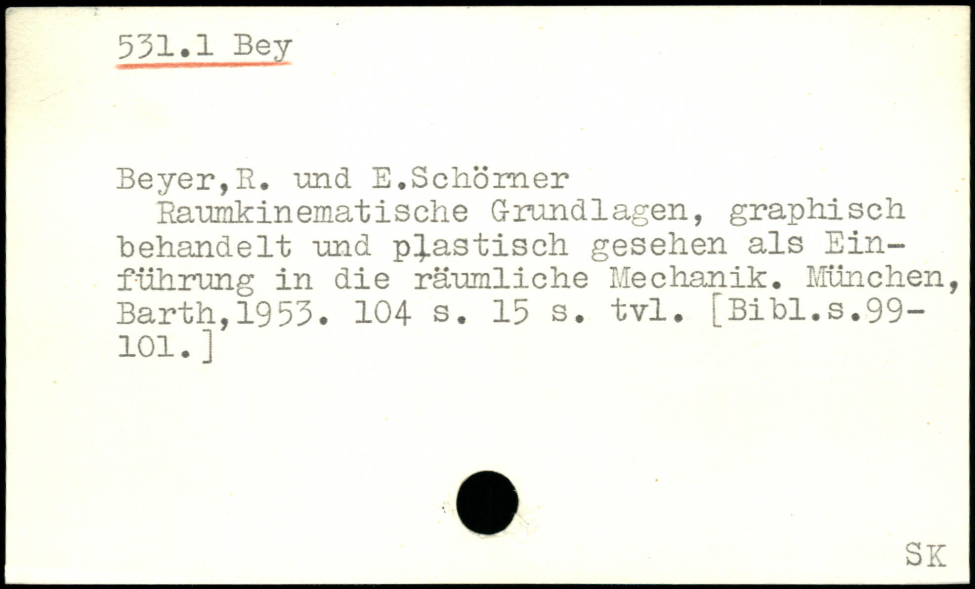 Beyer,R. 'and E.Schömer Raumkinematische Grundlagen, graphisch Behandelt and plastisch gesehen als Einführung in die räumliche Mechanik.