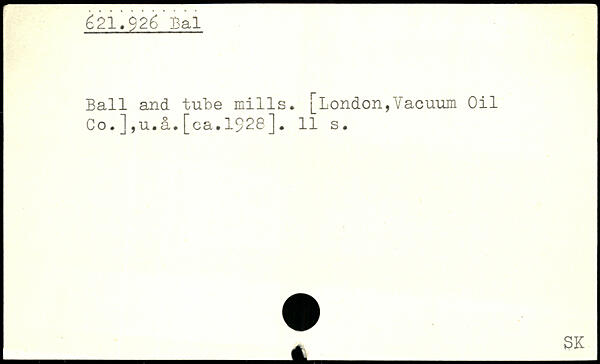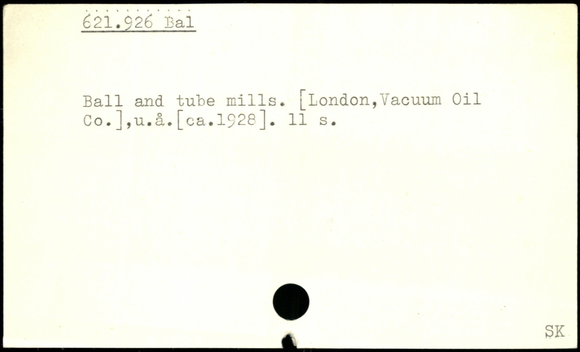 Ball and tube mills. [London,Vacuum Oil Co.],u.å.[ca.1928].
