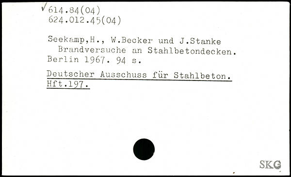 Seekamp,H., W.Becker und J.Stanke Brandversuche an Stahlbetondecken.
