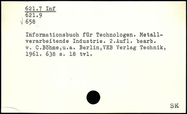 Informationsbuch für Technologen. Metallverarbeitende Industrie.
