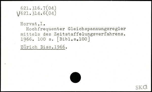 Hochfrequenter Gleichspannungsregler mittels des Zeitstaffelungsverfahrens. 1966.