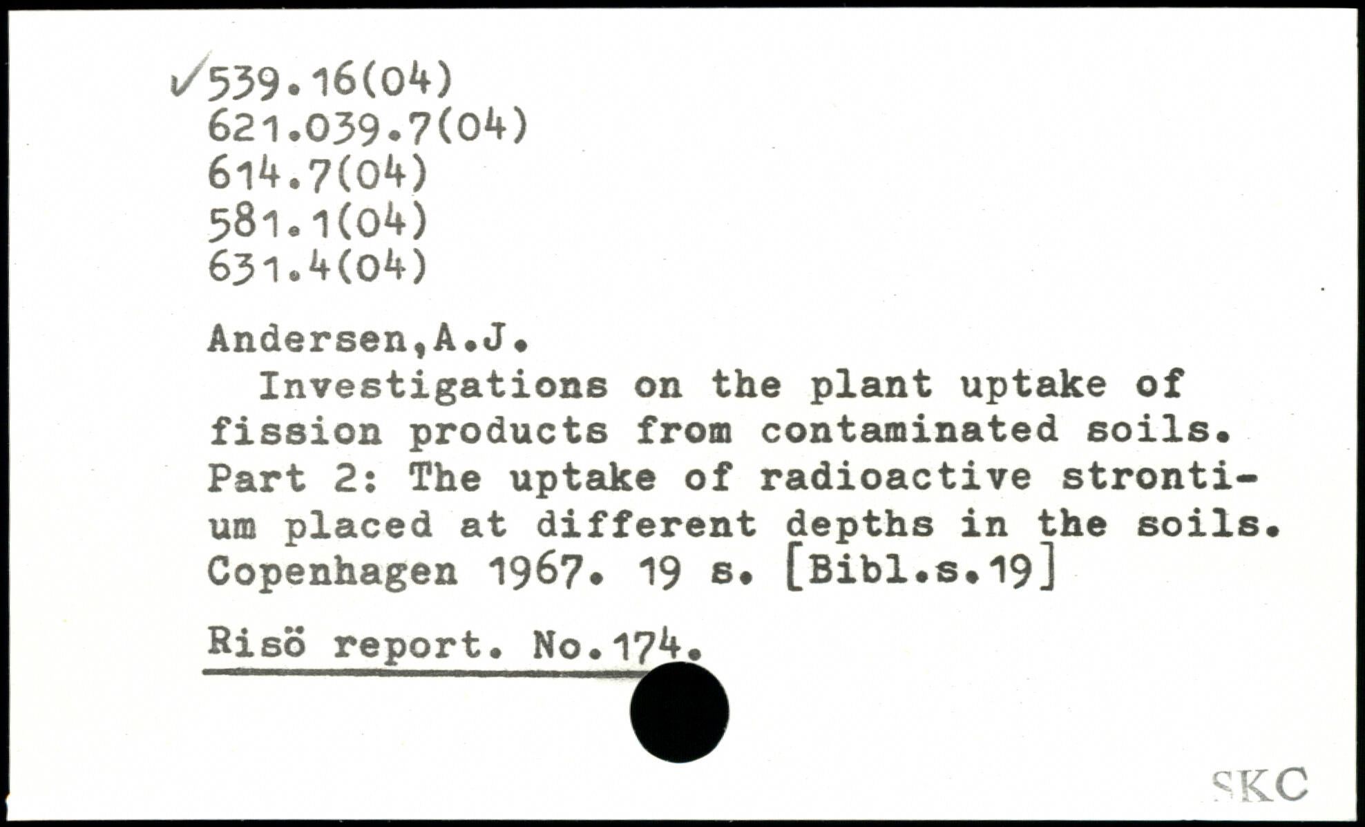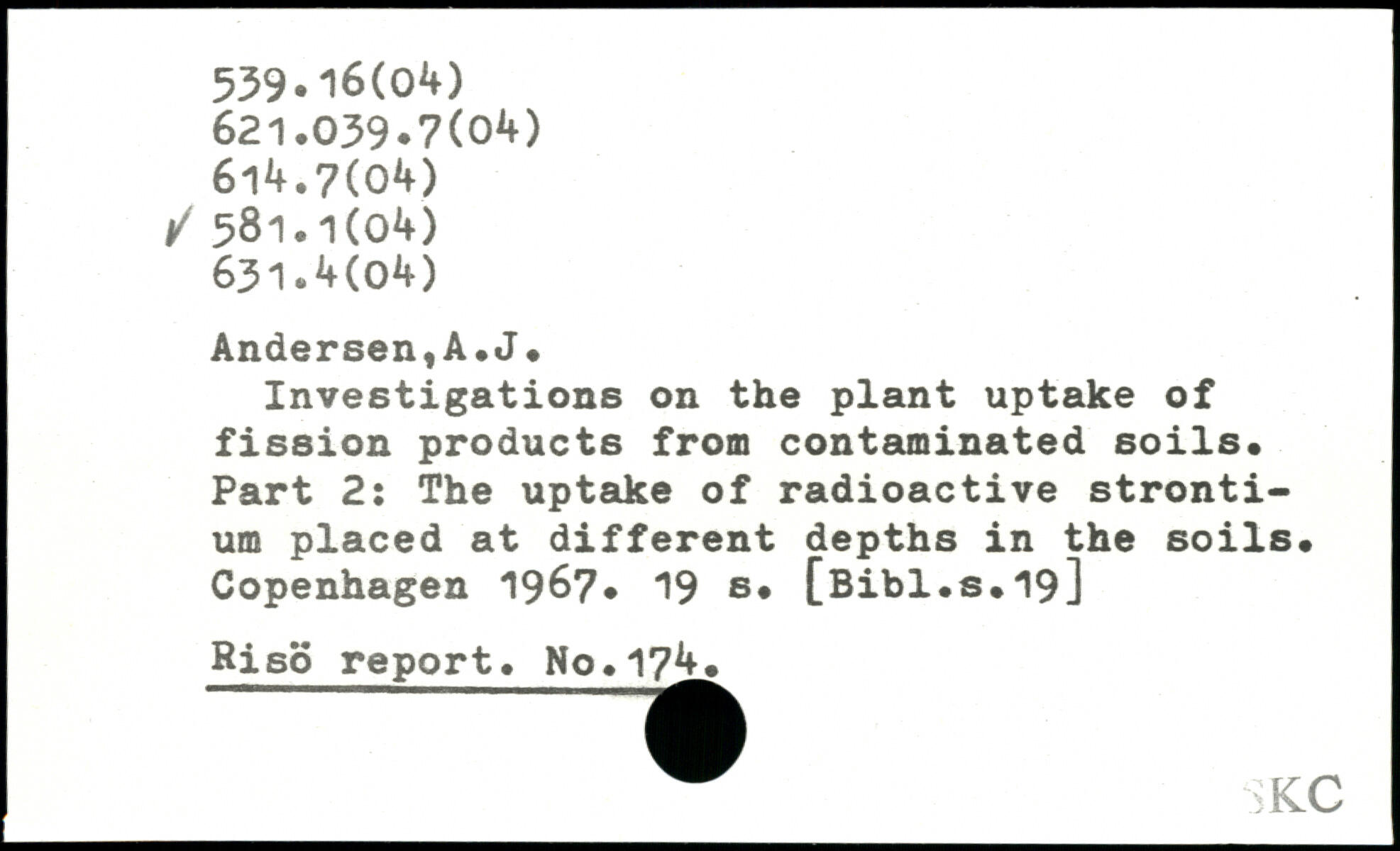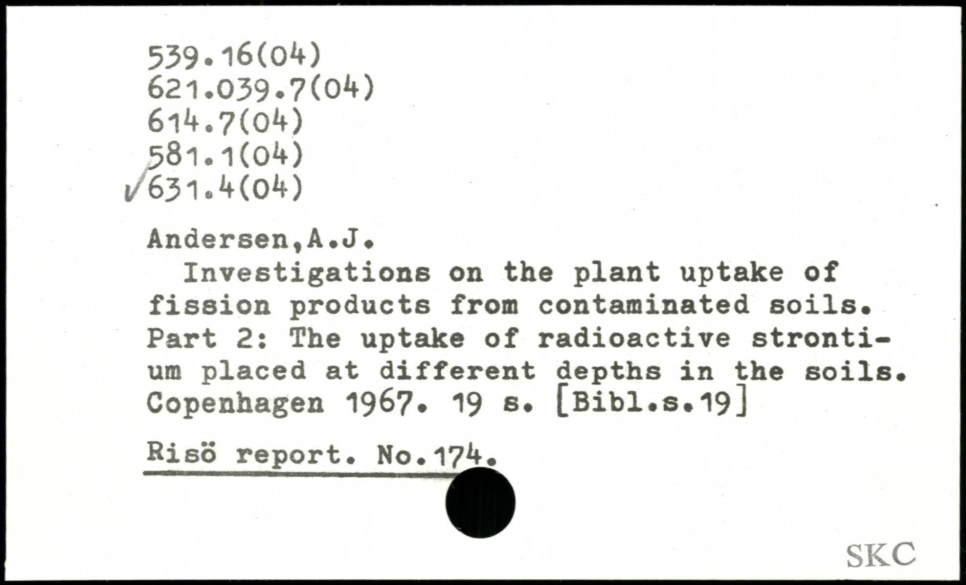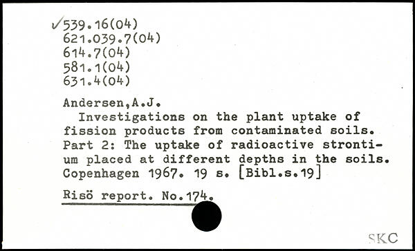 Investigations on the plant uptake of fission products from contaminated soils. Part 2: The uptake of radioactive strontium placed at different depths in the soils.