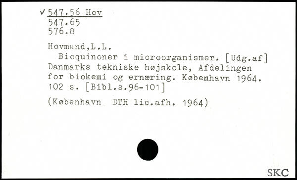 Bioquinoner i microorganismer. [Udg.af] Danmarks tekniske højskole, Afdelingen for "biokemi og ernæring.