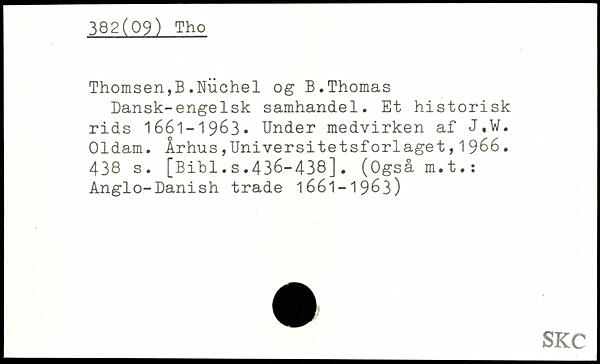 Thomsen,B .Niichel og B.Thomas Dansk-engelsk samhandel. Et historisk rids 1661-1963. Under medvirken af J.W. 01dam. Århus,Universitetsforlaget,1966.