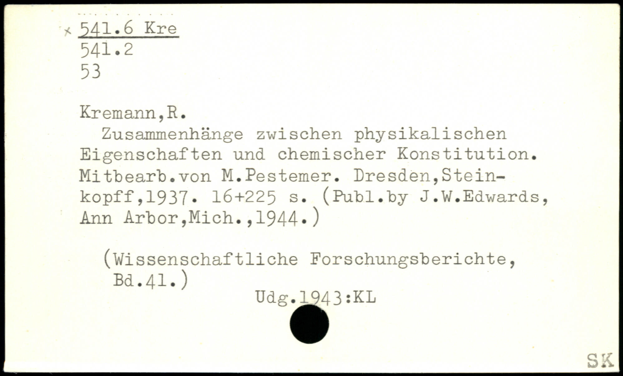 Zusammenhänge zwischen physikalischen Eigenschaften und chemischer Konstitution. Mitbearb.von M.Pestemer.
