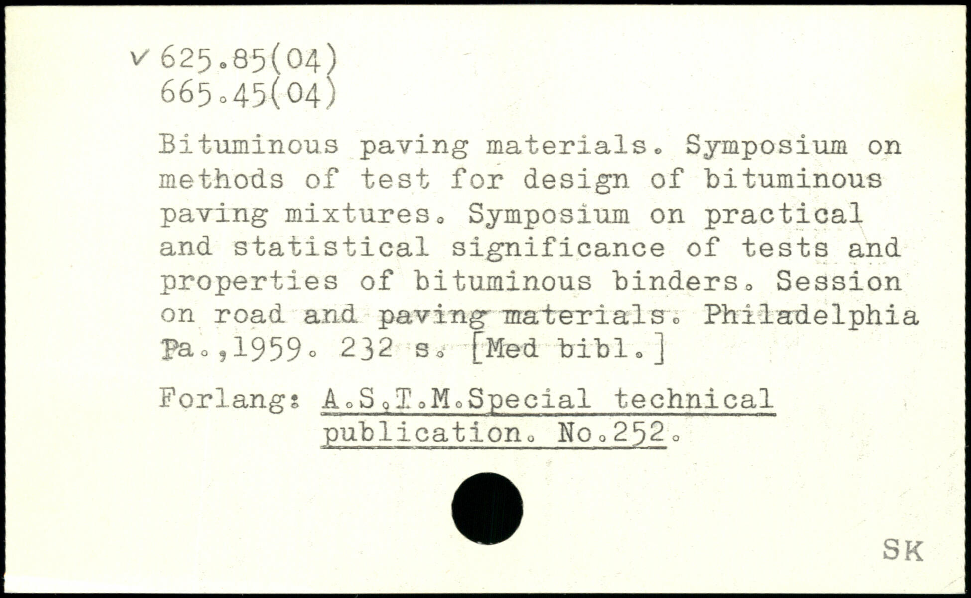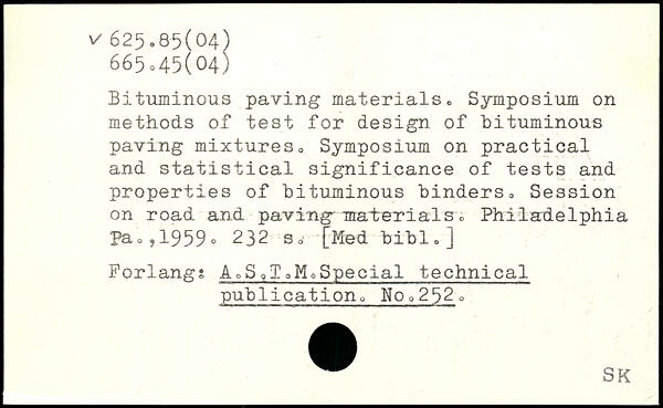 Bituminous paving materials <> Symposium on methods of test for design of Bituminous paving mixtureso Symposium on practical and statistical significance of tests and properties of bituminous binders, Session on road and paving' .materials".. Philadelphia Pac, 1959o