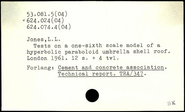 Jones,Lo L, Tests on a one-sixth scale model of a hyperbolic paraboloid umbrella shell roof