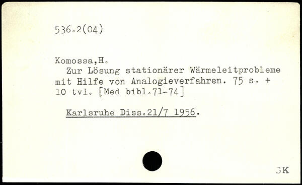 Zur Lösung stationärer Wärmeleitprohleme mit Hilfe von Analogieverfahren.
