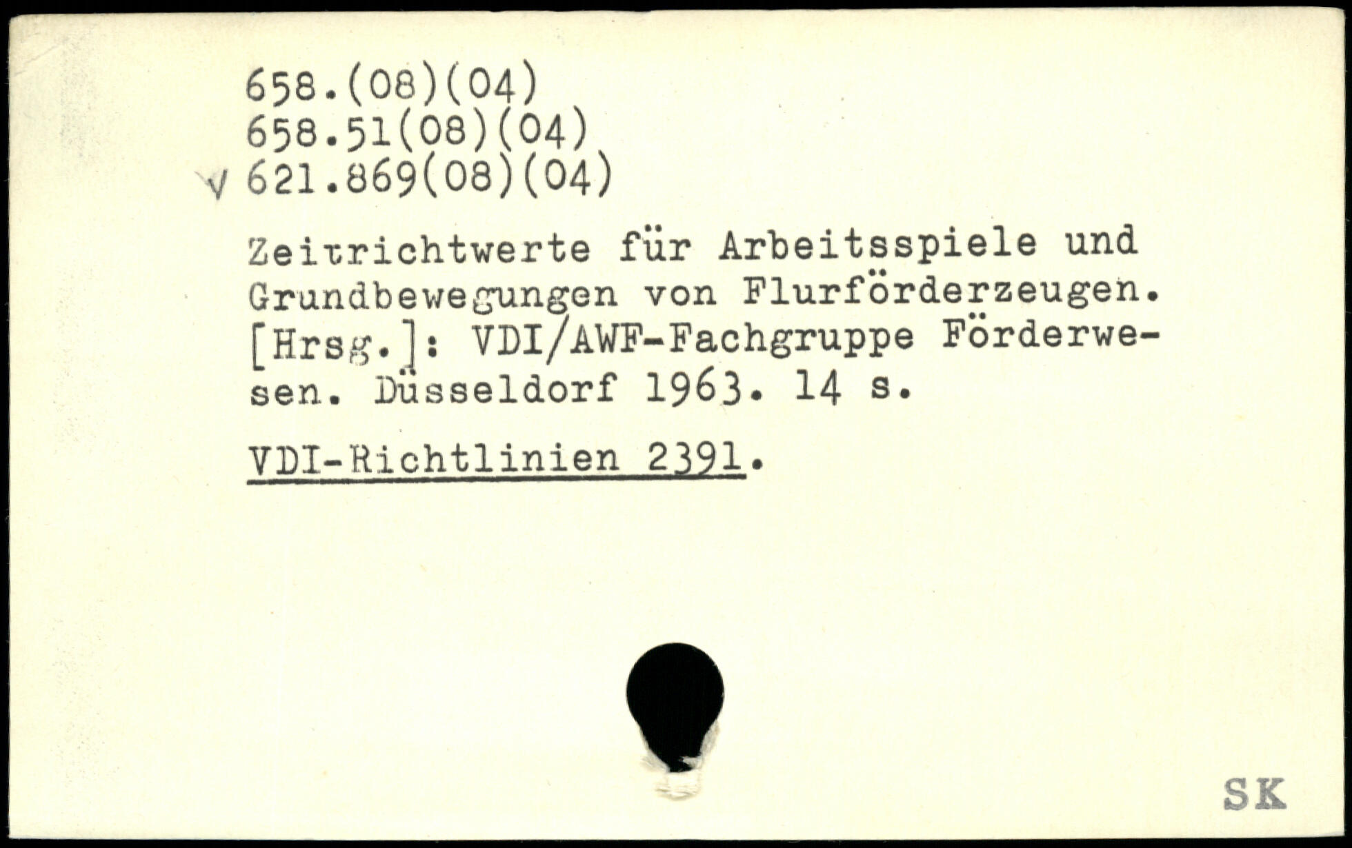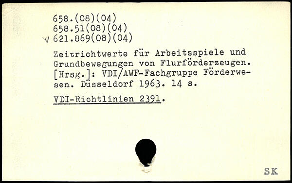 Zei-crichtwerte für Arbeitsspiele und Grundbewegungen von Flurförderzeugen, [Hrsg.]: VDl/AWF-Fachgruppe Förderwesen. Düsseldorf 19^3.