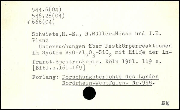 Untersuchungen über Festkörperreaktionen im System BaO-Al^O^-SiO^ mit Hilfe der Infrarot-Spektroskopie.
