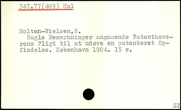 Kogle Bemærkninger angaaende Patenthaverens Pligt til at udøve en patenteret Opfindelse.