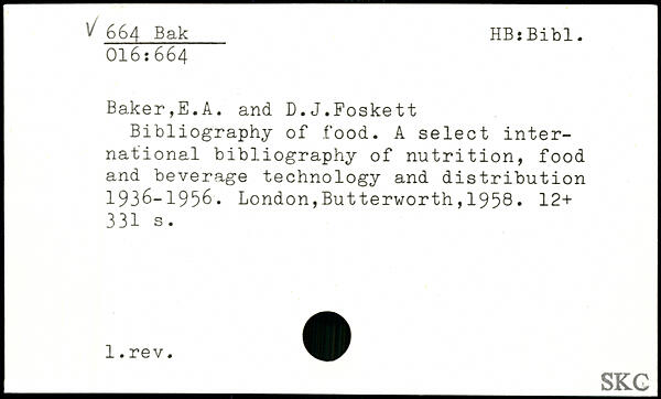 Bibliography of food. A select international bibliography of nutrition, food and beverage technology and distribution 1936-1956.