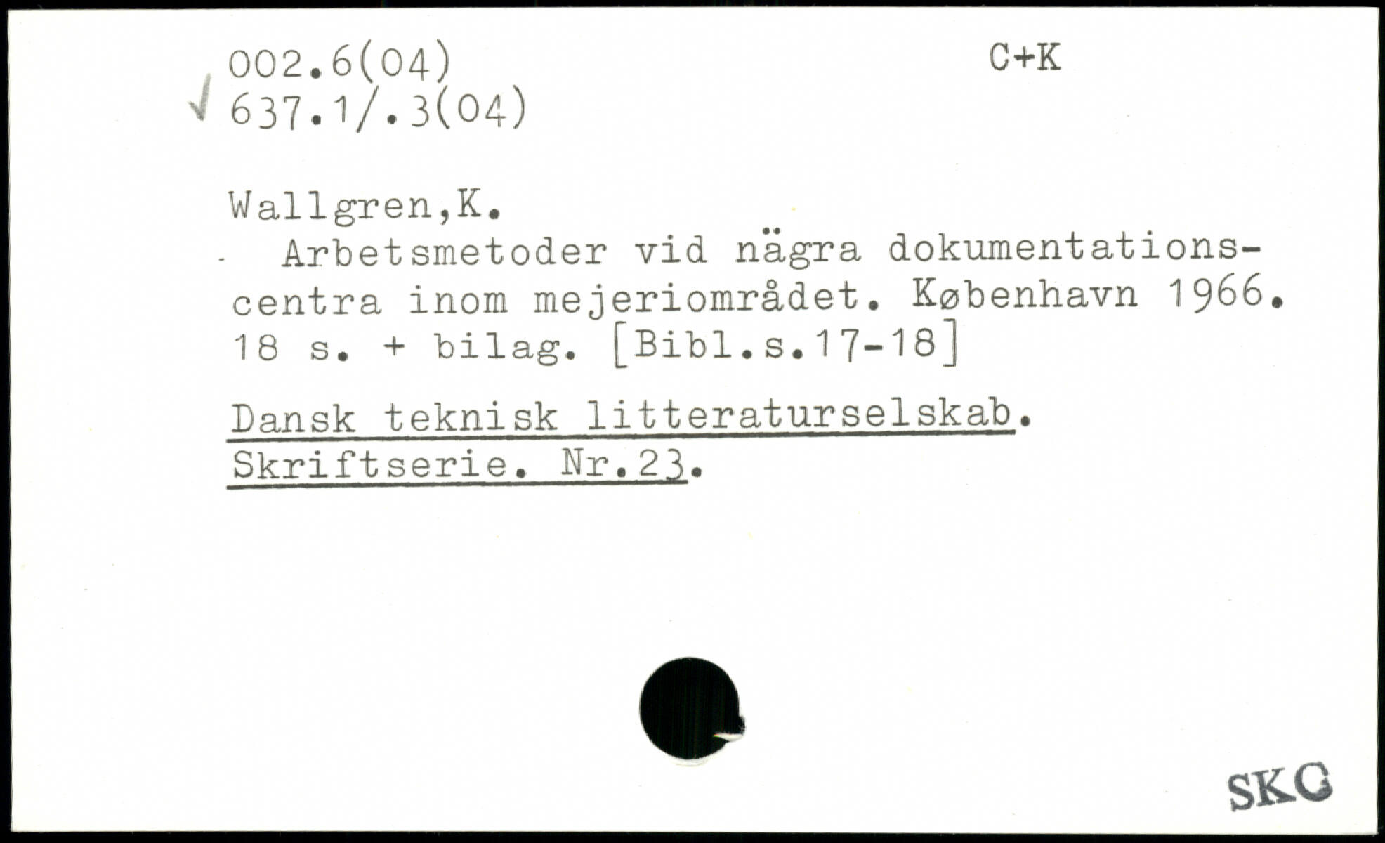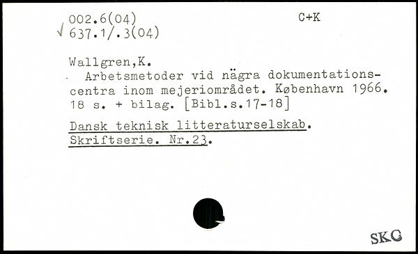 Arbetsmetoder vid nägra dokumentations-centra inom mejeriområdet.