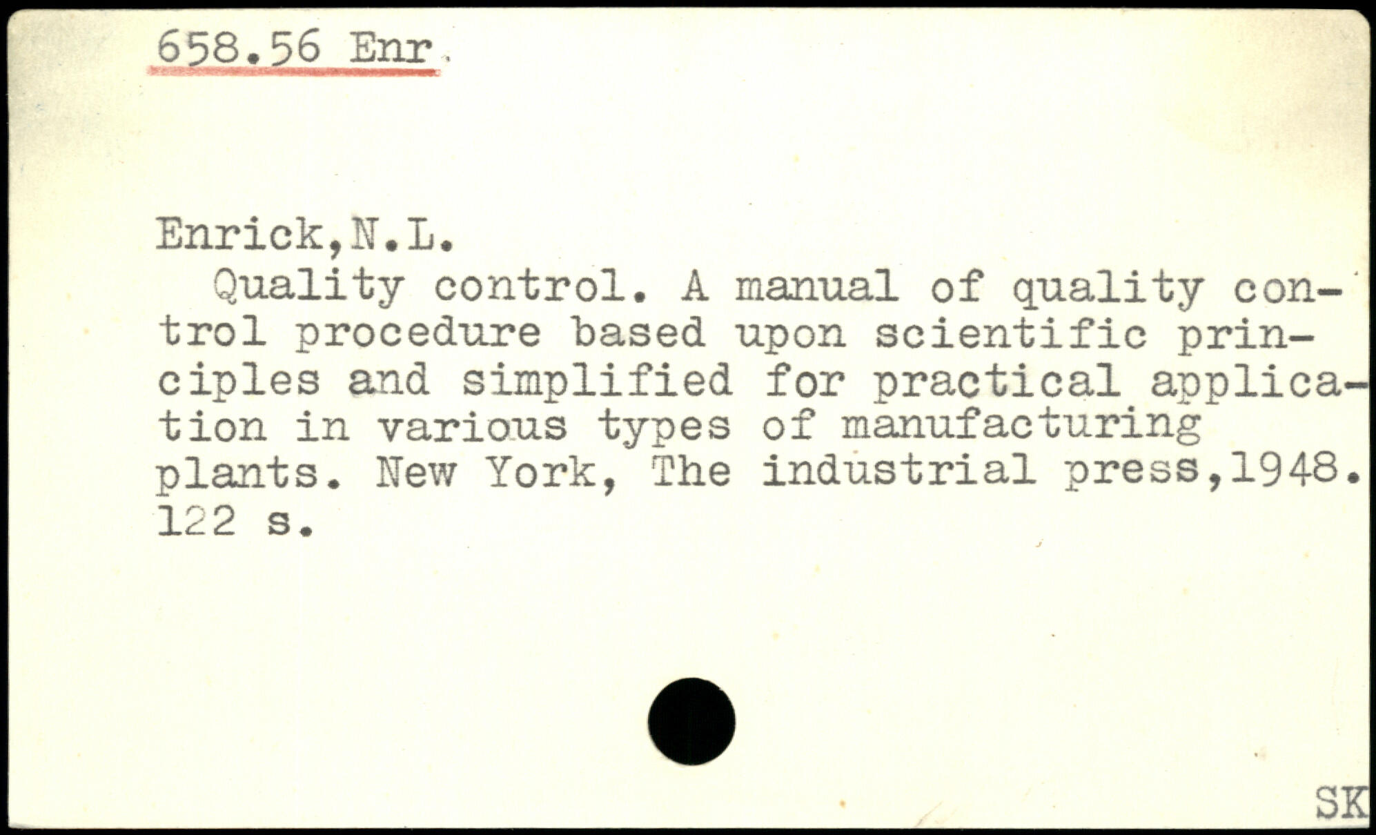 Quality control. A manual of quality con-' trol procedure based upon scientific principles and simplified for practical application in various types of manufacturing plants.
