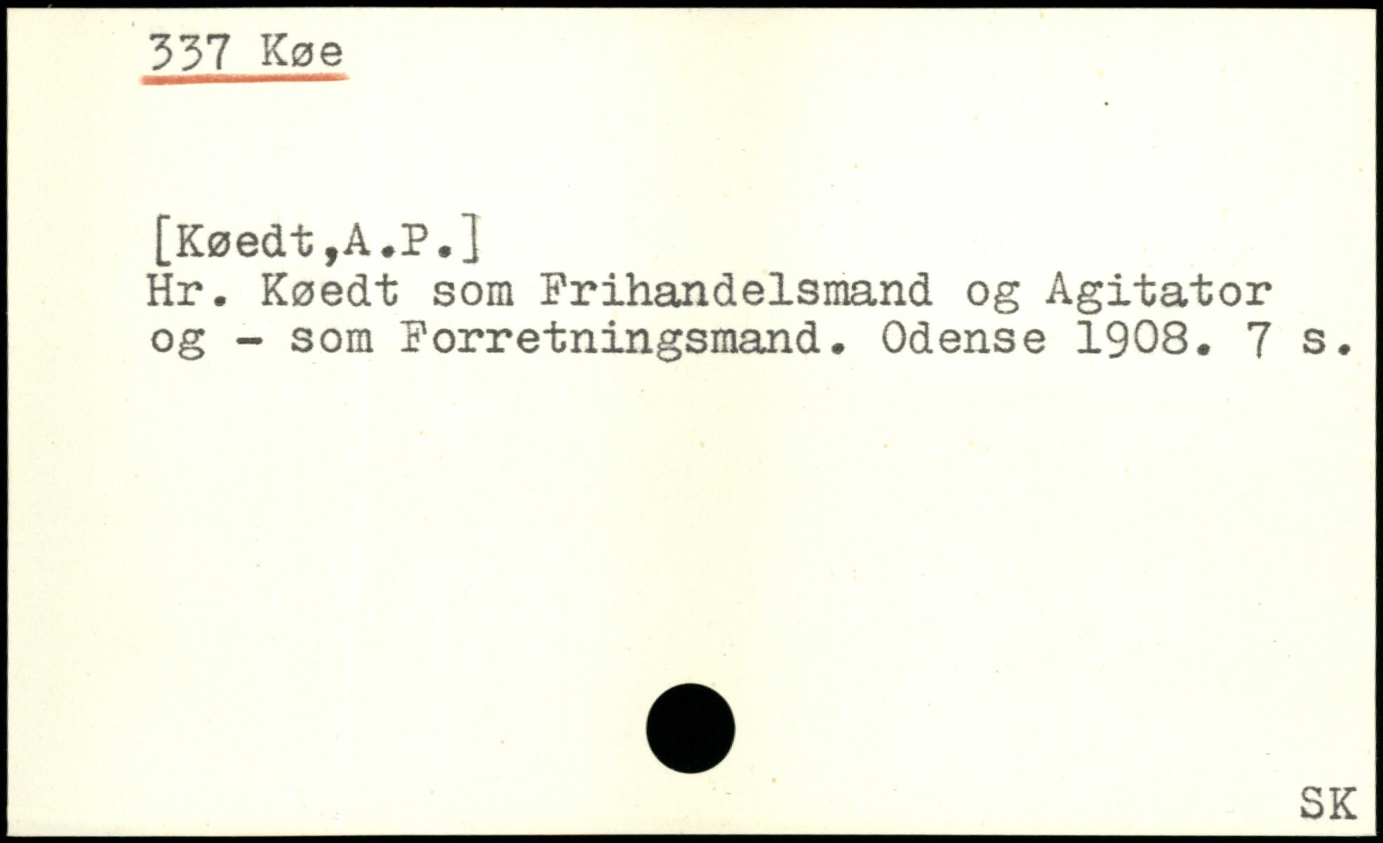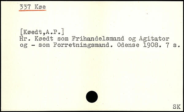 Hr. Køedt som Frihandelsmand og Agitator og - som Forretningsmand. Odense 1908.