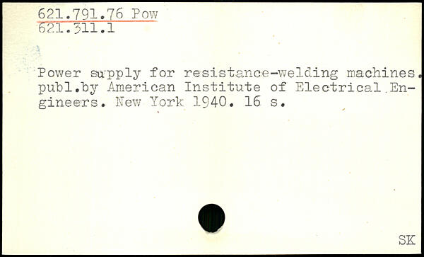 Power sa'pply for resistance-welding machines, publ.hy American Institute of Electrical.Engineers.