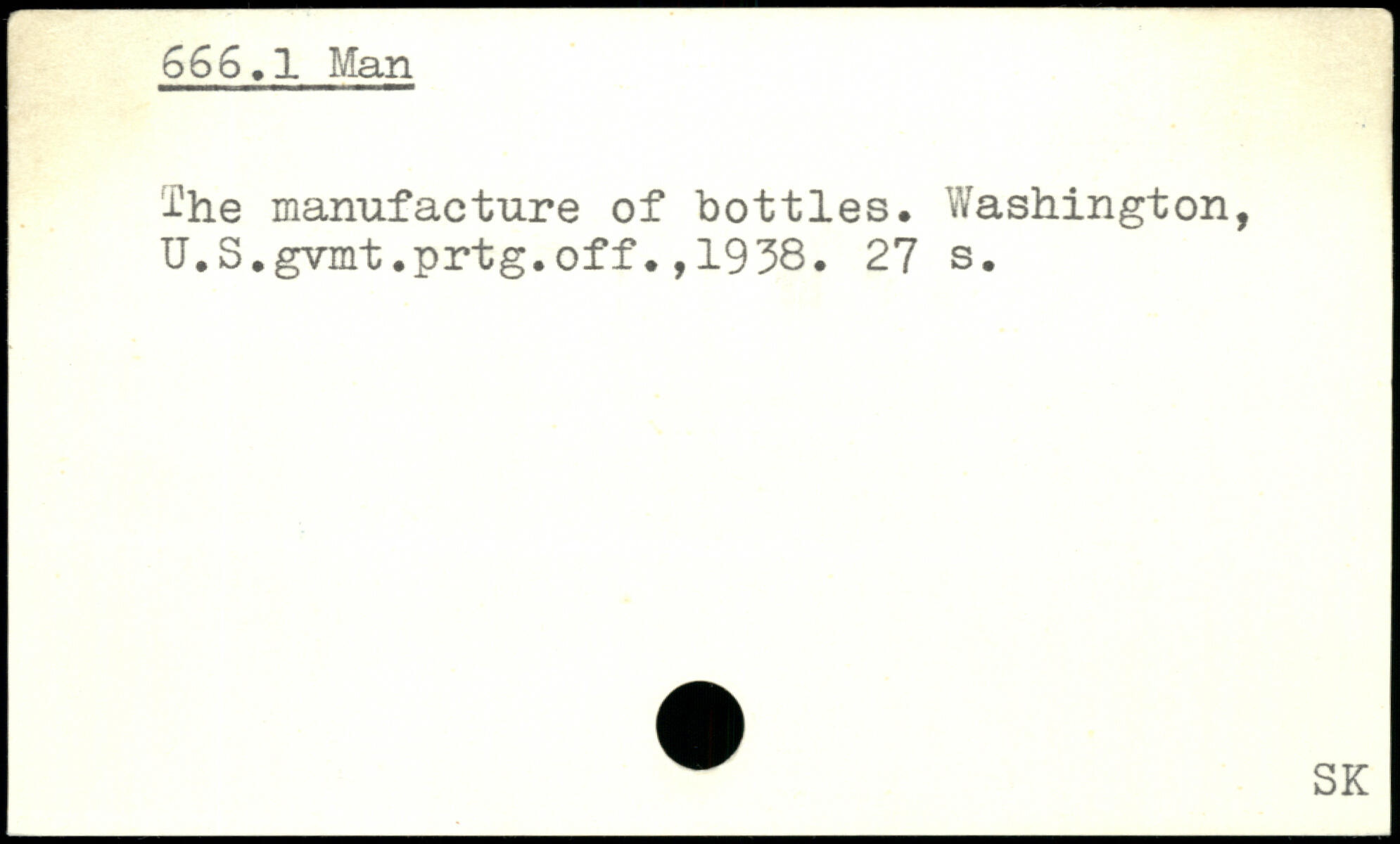 fhe manufacture of bottles. Washington, U.S.gvmt.prtg.off.,1938.