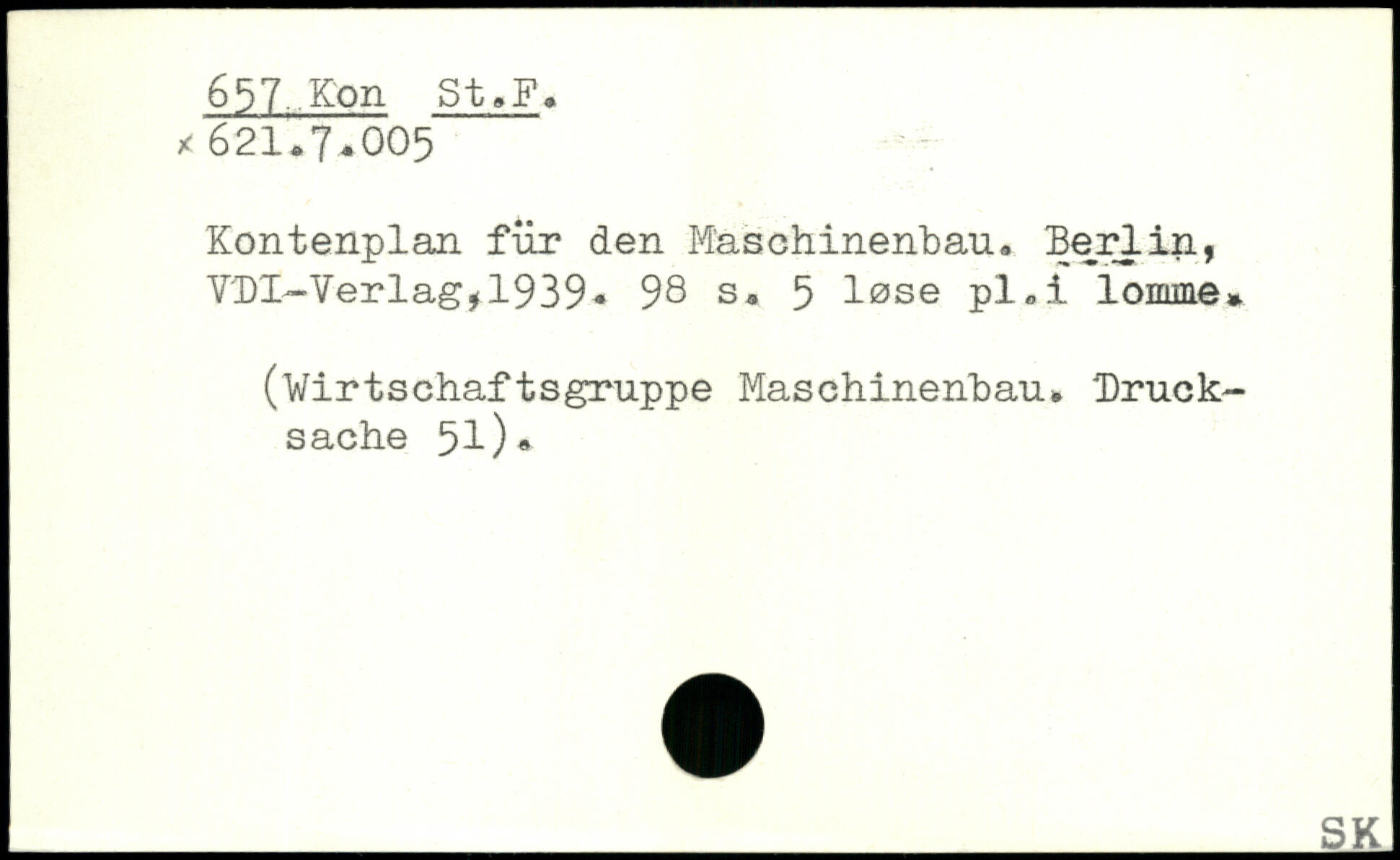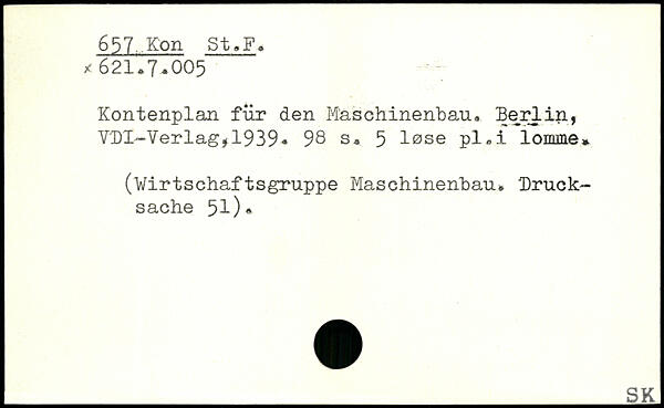 Kontenplan für den Maschinenbau. Berlin, VDI—Verlag.1939.