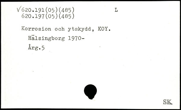 Korrosion och ytskydd, KOY. Hälsingborg 1970-År g. 5