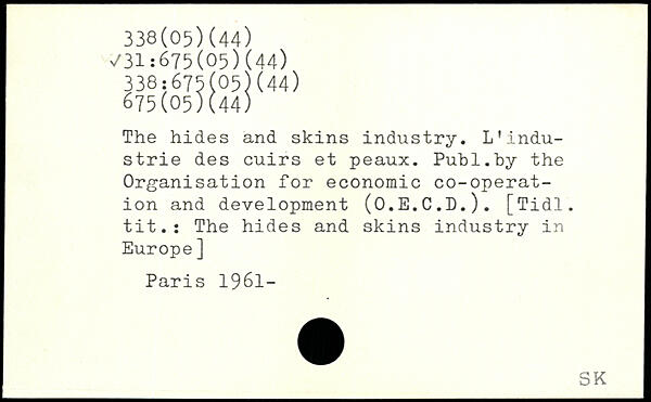 The hides and skins industry. L'industrie des cuirs et peaux. Puhl.by the Organisation for economic co-operation and development (O.E.C.D.). [Tidl. tit.: The hides and skins industry in j Europe]