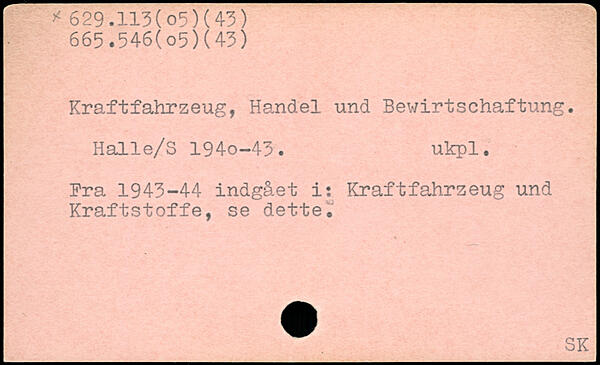 Kraftfahrzeug, Handel und Bewirtschaftung. Halle/S 194o-43. ukpl. Fra 1943-44 indgäet i: Kraftfahrzeug und Kraftstoffe, se dette.