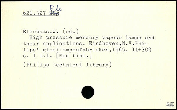 Elenbaas,W. 'ved.) High pressure mercury vapour lamps and their applications. Eindhoven,N.V.Philips' gloeilampenfabrieken,1965.