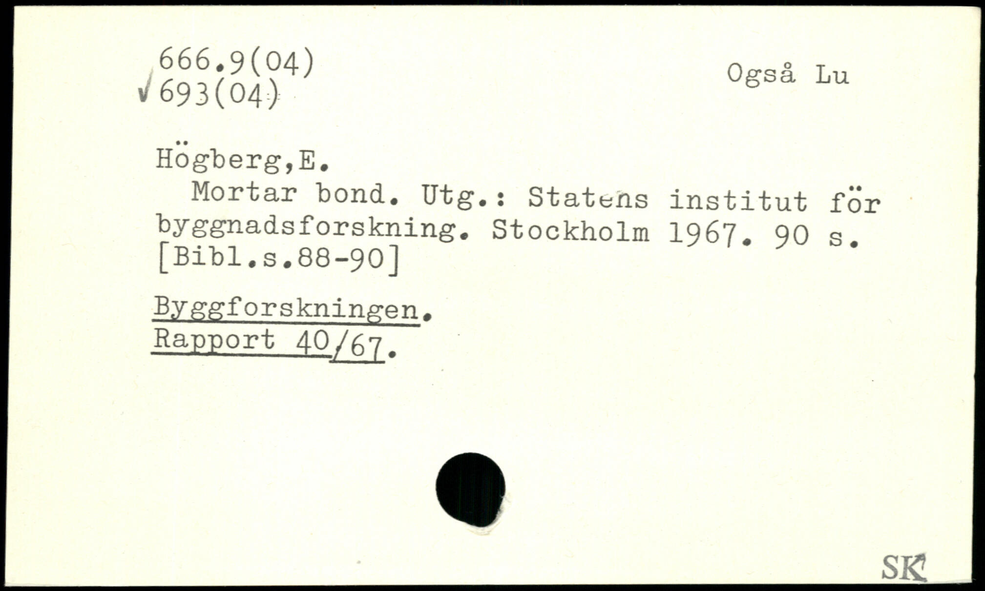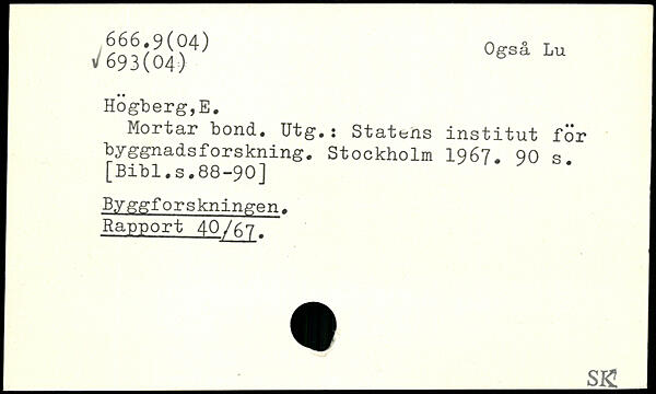 Mörtar bond. Utg. : Statens institut för byggnadsforskning.