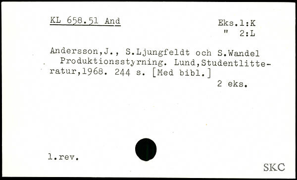 Anciersson, J. , S.Ljungfeldt och S.Wandel Produktionsst,y rning.