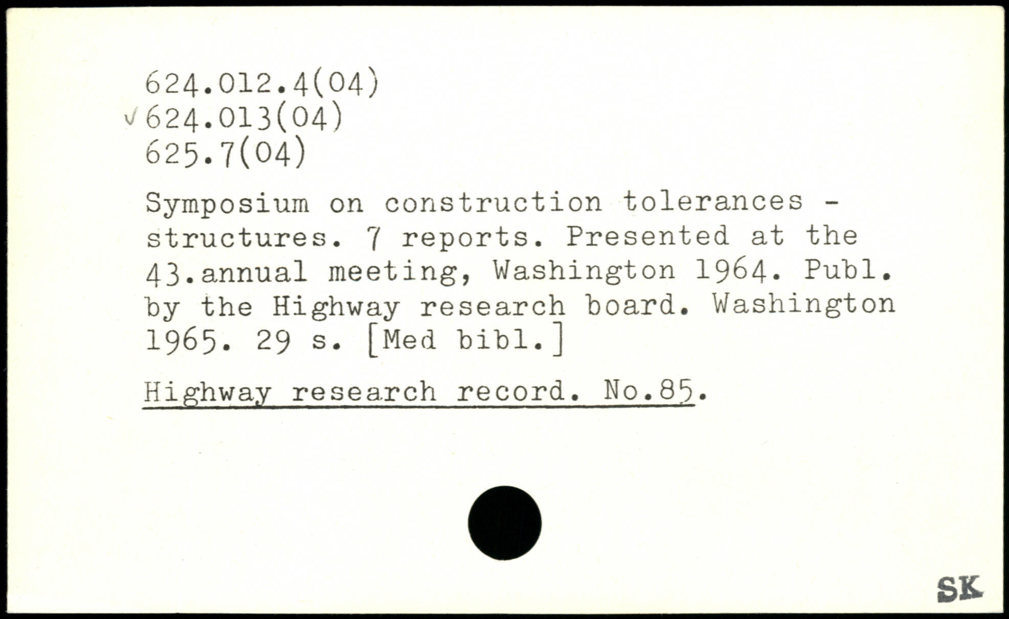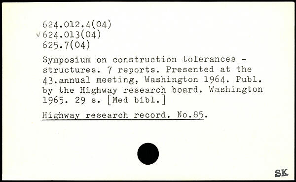 Symposium on construction tolerances -structures. 7 reports. Presented at the 43.annual meeting
