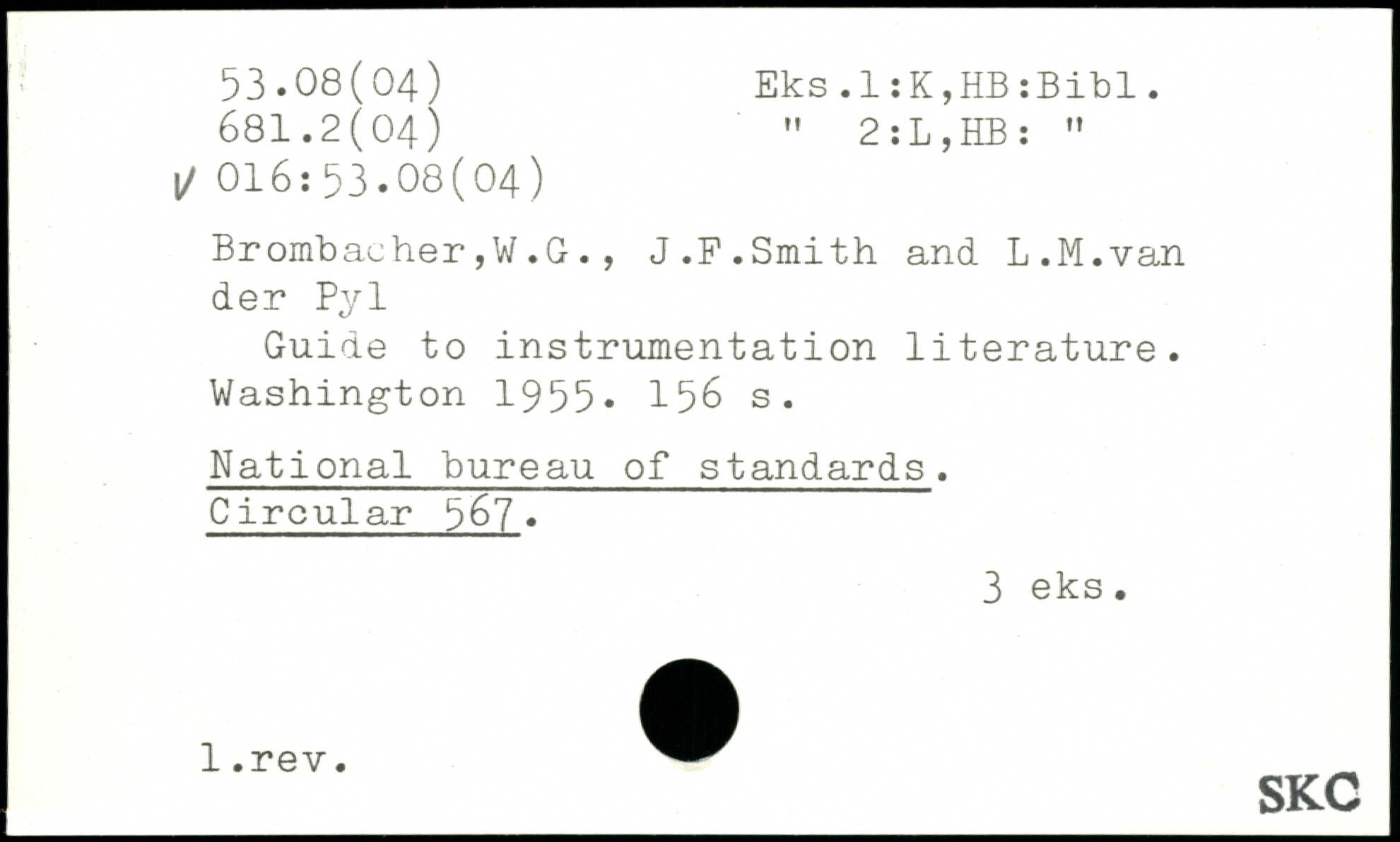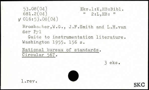 Brombaeher,W.G., J.F.Smith and L.M.van der Pyl Guide to instrumentâtion literature.