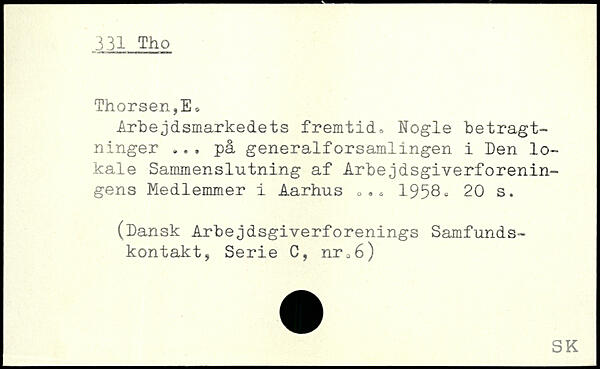 Arbejdsmarkedets fremtid, Nogle betragtninger på generalforsamlingen i Den lokale Sammenslutning af Arbejdsgiverforenin-gens Medlemmer i Aarhus oss 1958=